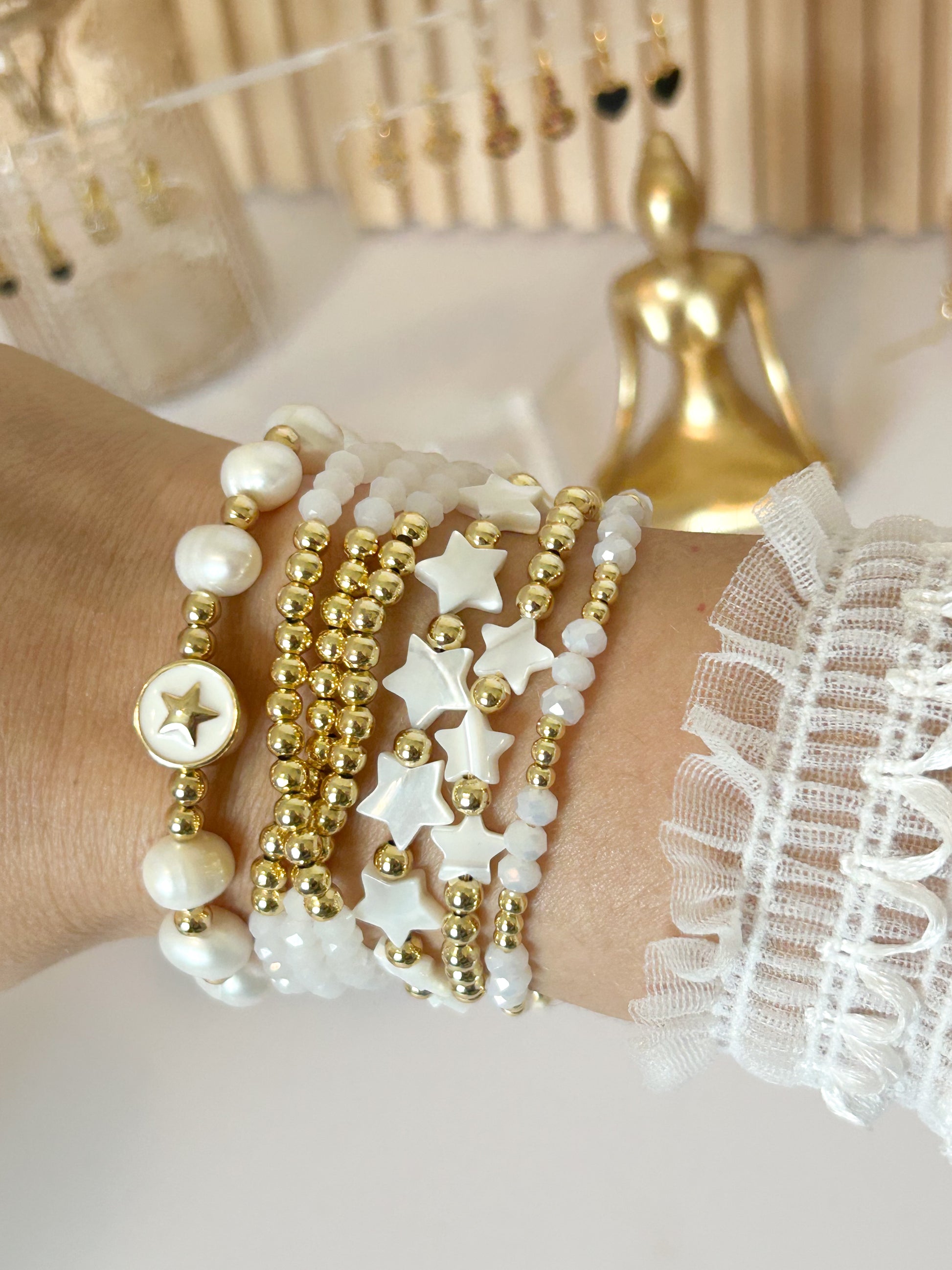 Gloria Star Bracelet Stack – White Gold Beads Everyday Gift